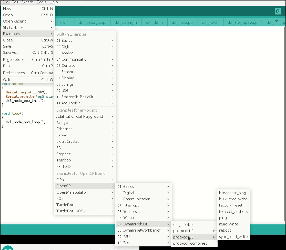 어떤 이유로 arduino DynamixelSDK c++ 코드(프로토콜 버전 2)는 대부분(적어도 내가 테스트한 모든 코드)에서 작동하지 않았습니다.